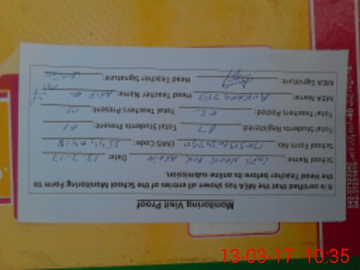 | Certified that this School was Inspected by the Undersigned MEA/DMO Today and the Information Stated Above is as Per Record. | |||||