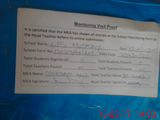 | EMIS Code: 35430522 | Name of School: GPS MUDKAY | |||