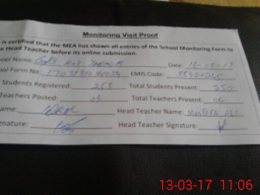| EMIS Code: 35420245 | Name of School: GPS KOT YAQOOB | |||