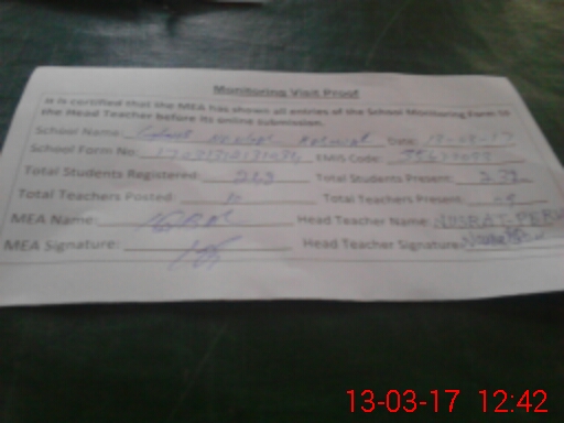 | Attendance Register | Head Teacher | MEA with School | Visit Proof |