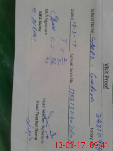 | Attendance Register | Head Teacher | MEA with School | Visit Proof |