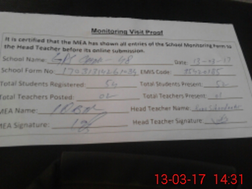 | EMIS Code: 35420185 | Name of School: GPS CHAK NO 48 MURIDKE | |||