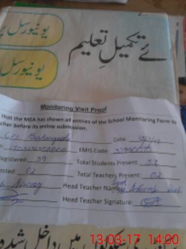 | EMIS Code: 35440075 | Name of School: GPS BURHANEY WALA | |||