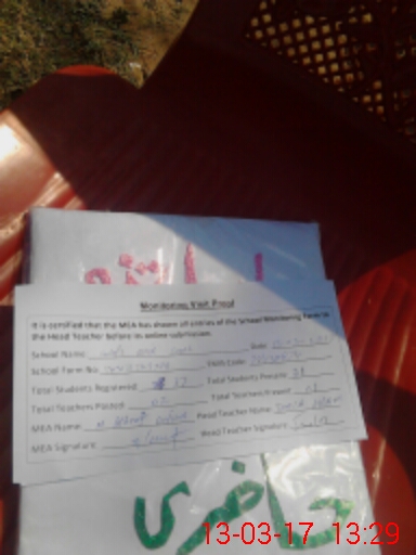 | Attendance Register | Head Teacher | MEA with School | Visit Proof |
