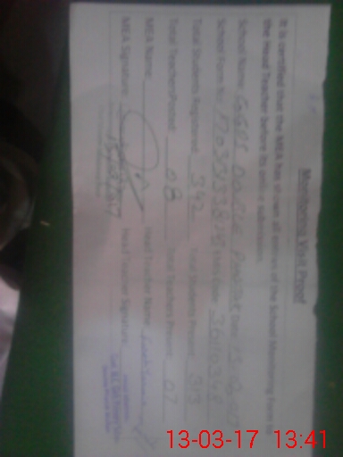 | Certified that this School was Inspected by the Undersigned MEA/DMO Today and the Information Stated Above is as Per Record. | |||||