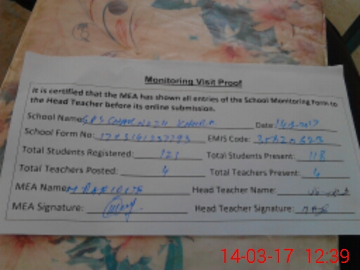 | Attendance Register | Head Teacher | MEA with School | Visit Proof |