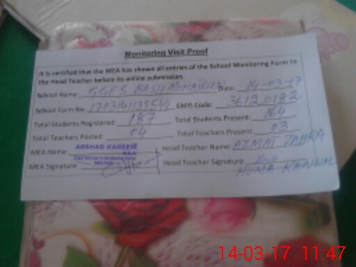 | Certified that this School was Inspected by the Undersigned MEA/DMO Today and the Information Stated Above is as Per Record. | |||||