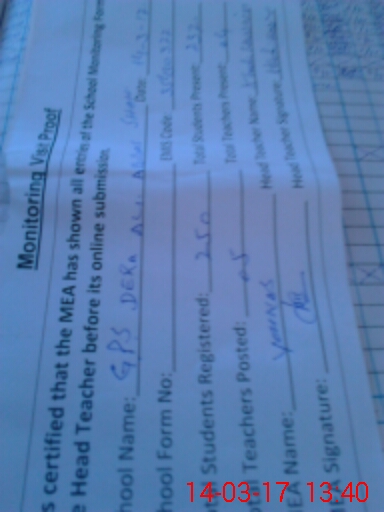 | Certified that this School was Inspected by the Undersigned MEA/DMO Today and the Information Stated Above is as Per Record. | |||||