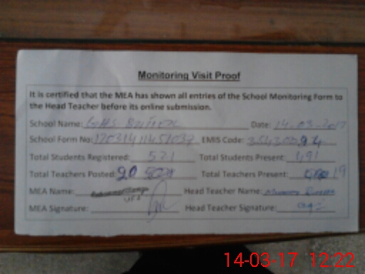 | EMIS Code: 35430024 | Name of School: GHS BUTTAR | |||