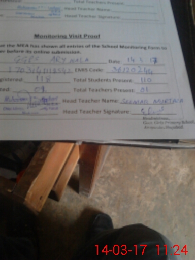 | Attendance Register | Head Teacher | MEA with School | Visit Proof |