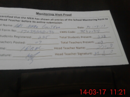 | Certified that this School was Inspected by the Undersigned MEA/DMO Today and the Information Stated Above is as Per Record. | |||||