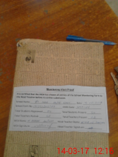 | Attendance Register | Head Teacher | MEA with School | Visit Proof |