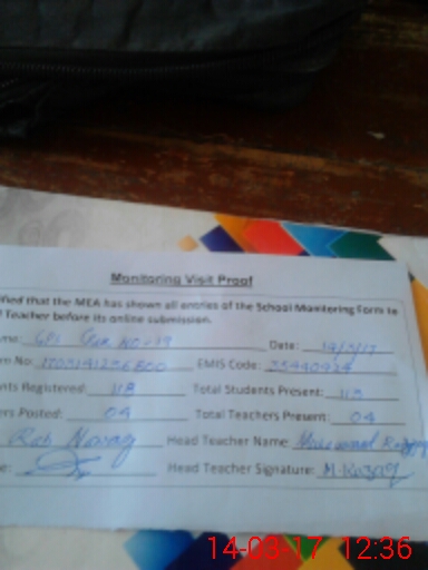 | Attendance Register | Head Teacher | MEA with School | Visit Proof |