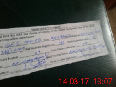 | Attendance Register | Head Teacher | MEA with School | Visit Proof |