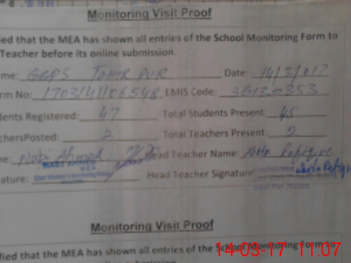 | Attendance Register | Head Teacher | MEA with School | Visit Proof |