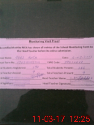 | Attendance Register | Head Teacher | MEA with School | Visit Proof |