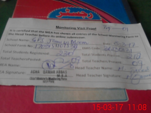 | EMIS Code: 36130131 | Name of School: GPS JAMI UL ALOOM DOULAT GATE MULTAN | |||