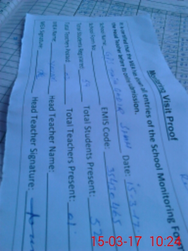 | Attendance Register | Head Teacher | MEA with School | Visit Proof |
