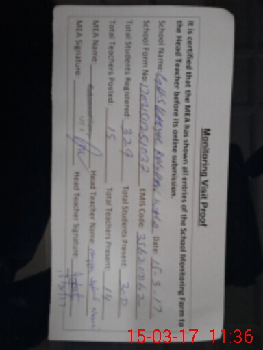 | Attendance Register | Head Teacher | MEA with School | Visit Proof |