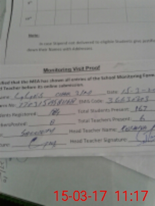 | Attendance Register | Head Teacher | MEA with School | Visit Proof |