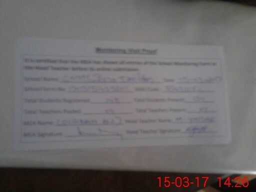 | Attendance Register | Head Teacher | MEA with School | Visit Proof |