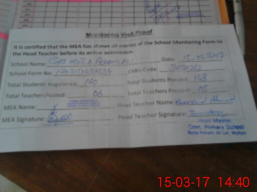| EMIS Code: 36130262 | Name of School: GPS KOTLA RAHAM ALI LAR MULTAN | |||