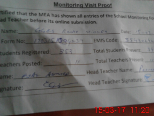 | Certified that this School was Inspected by the Undersigned MEA/DMO Today and the Information Stated Above is as Per Record. | |||||