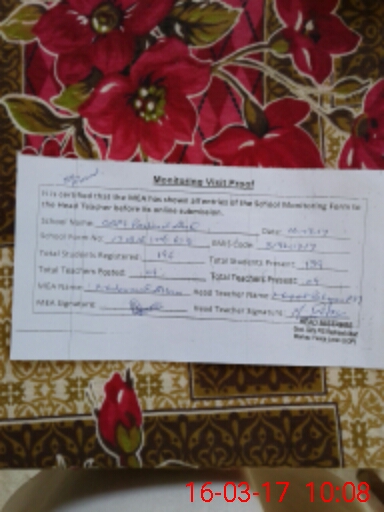 | Certified that this School was Inspected by the Undersigned MEA/DMO Today and the Information Stated Above is as Per Record. | |||||