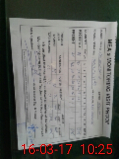 | Monitoring Date: 16-03-2017 | Start Time: 16-03-2017 10:01 AM | End Time: 16-03-2017 10:52 AM | Name of MEA: Ra**** Sh**** Al**** ex**** | |