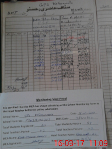 | Attendance Register | Head Teacher | MEA with School | Visit Proof |