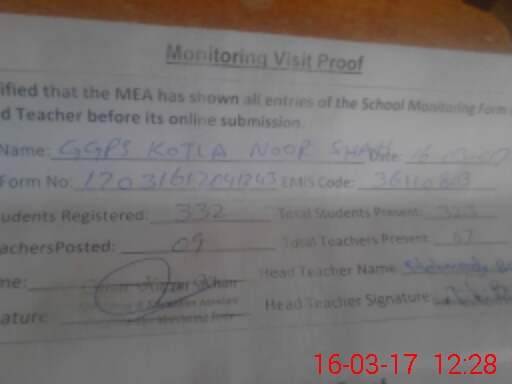 | EMIS Code: 36110803 | Name of School: GGPS KOTLA NOOR SHAH MUZAFARABAD | |||