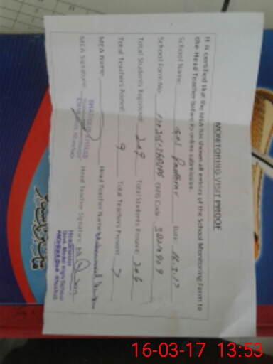 | Name: Gh**** Ra**** Designation: (School Headmaster's/Headmistress's) S S T Science Phone/Cell Number: 03**** |