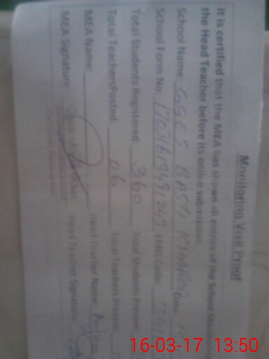 | Attendance Register | Head Teacher | MEA with School | Visit Proof |
