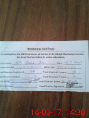 | Attendance Register | Head Teacher | MEA with School | Visit Proof |