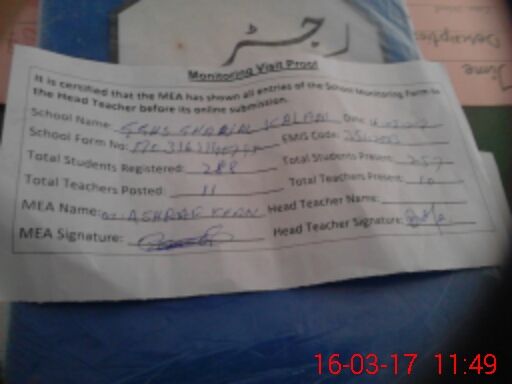| Attendance Register | Head Teacher | MEA with School | Visit Proof |