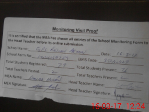 | EMIS Code: 35440429 | Name of School: GPS RAJIAN ARYAN | |||