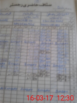 | CNIC | Full Name | Designation | R/C | Absence During Last Calender Month |