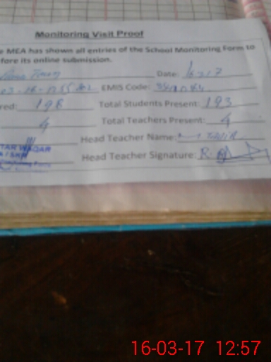 | Attendance Register | Head Teacher | MEA with School | Visit Proof |
