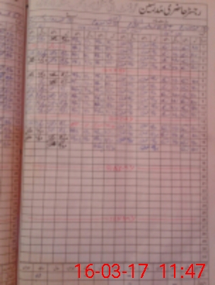 | CNIC | Full Name | Designation | R/C | Absence During Last Calender Month |