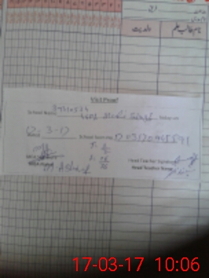 | School Visited by School Health & Nutrition Supervisor (No. of Visits) | 1 | Name1: | MATE UR REHAN | Name2: | |