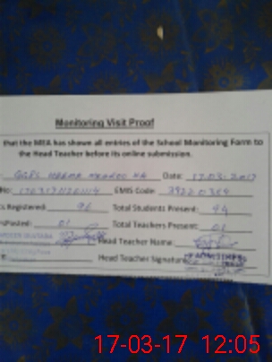 | Attendance Register | Head Teacher | MEA with School | Visit Proof |