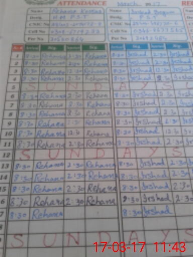 | CNIC | Full Name | Designation | R/C | Absence During Last Calender Month |