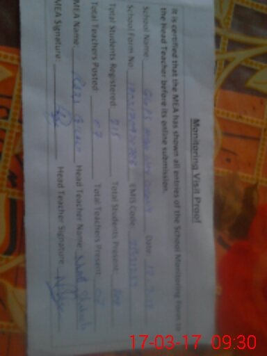 | Certified that this School was Inspected by the Undersigned MEA/DMO Today and the Information Stated Above is as Per Record. | |||||