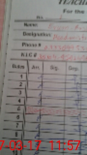 | CNIC | Full Name | Designation | R/C | Absence During Last Calender Month |