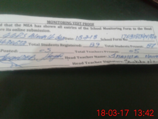 | Attendance Register | Head Teacher | MEA with School | Visit Proof |