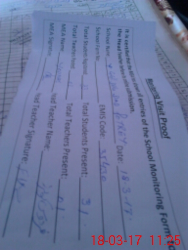 | Attendance Register | Head Teacher | MEA with School | Visit Proof |