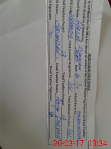 | Attendance Register | Head Teacher | MEA with School | Visit Proof |