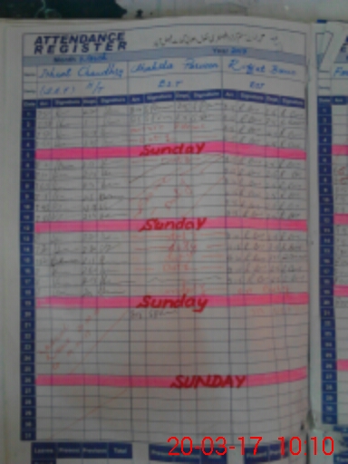 | CNIC | Full Name | Designation | R/C | Absence During Last Calender Month |