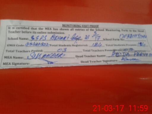 | EMIS Code: 38420822 | Name of School: GGPS BEHARI COLONY SARGODHA | |||