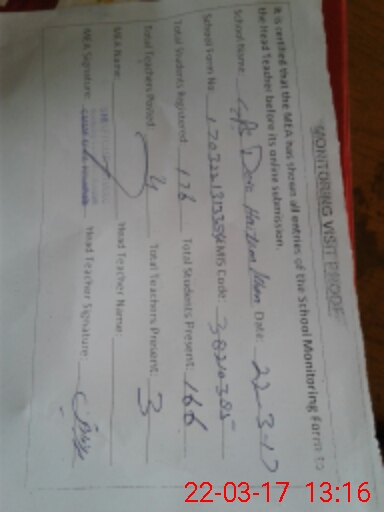 | Attendance Register | Head Teacher | MEA with School | Visit Proof |